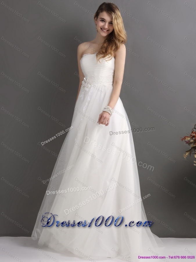 2015 Perfect Strapless Wedding Dress with Beading and Appliques