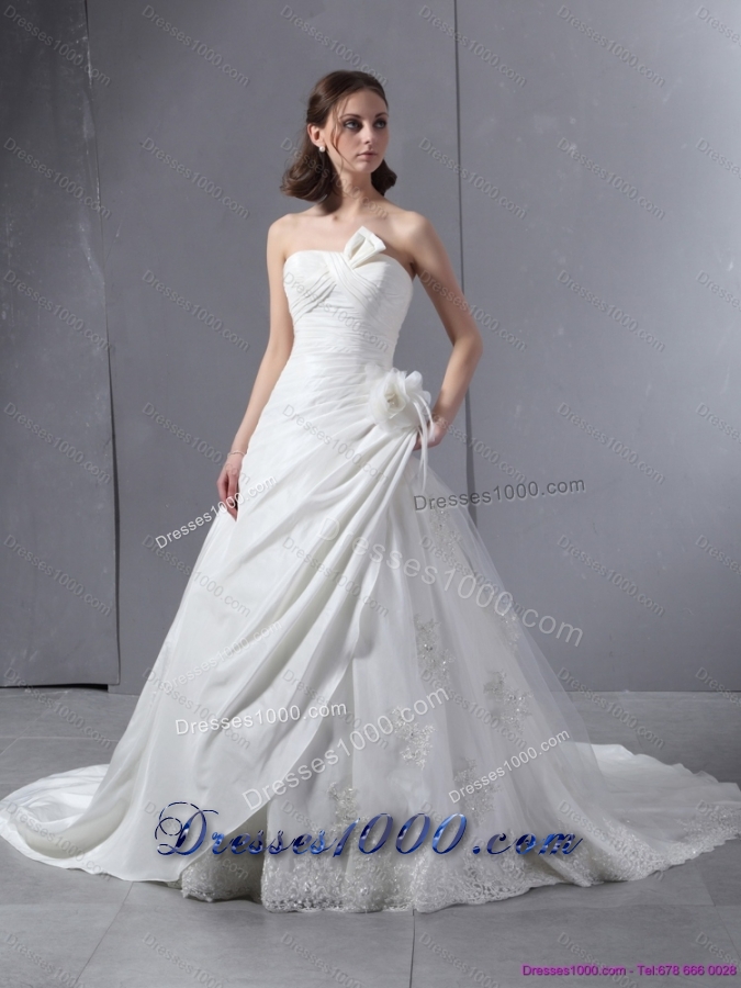 2015 Perfect Strapless Wedding Dress with Hand Made Flowers and Ruching