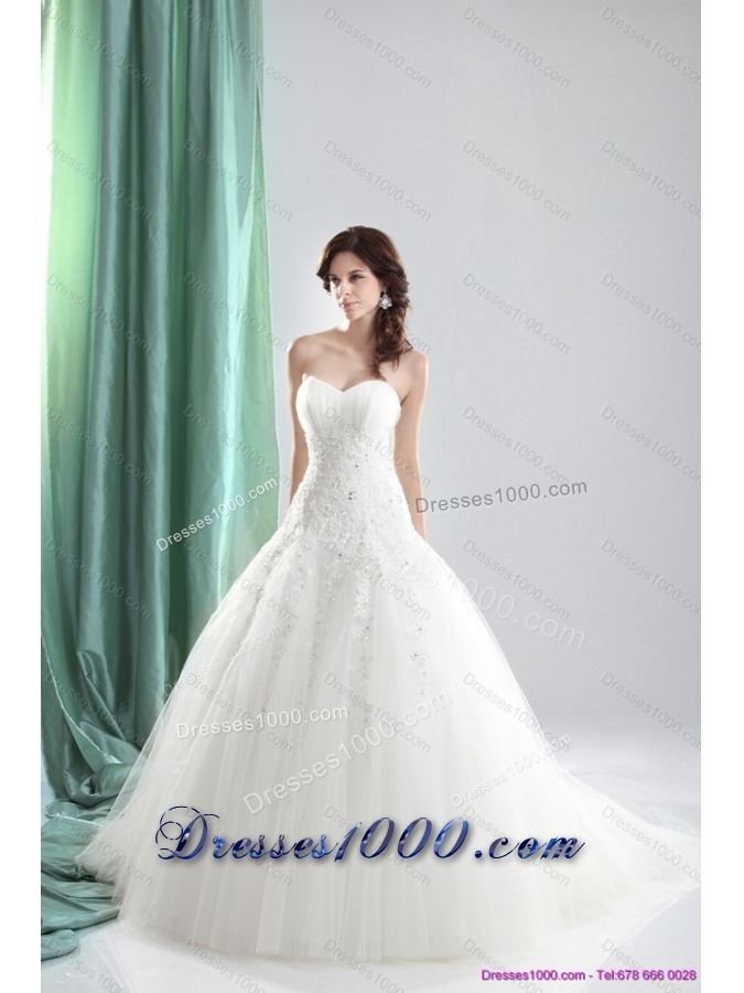 2015 Perfect Sweetheart A Line Wedding Dress with Appliques