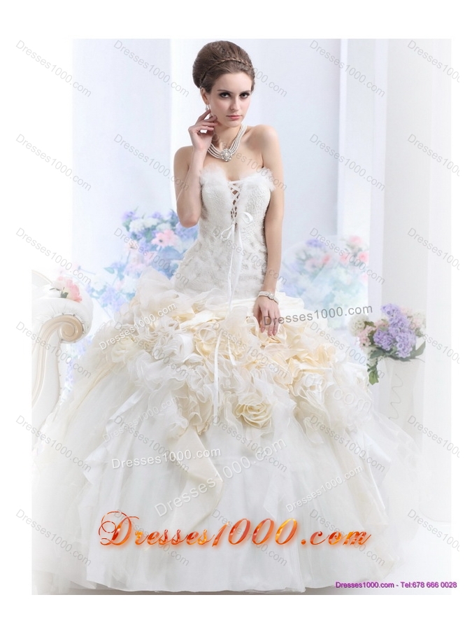 2015 Perfect Strapless Wedding Dress with Hand Made Flowers