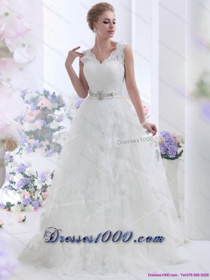 New Style Brush Train White Wedding Dresses with Lace and Beading