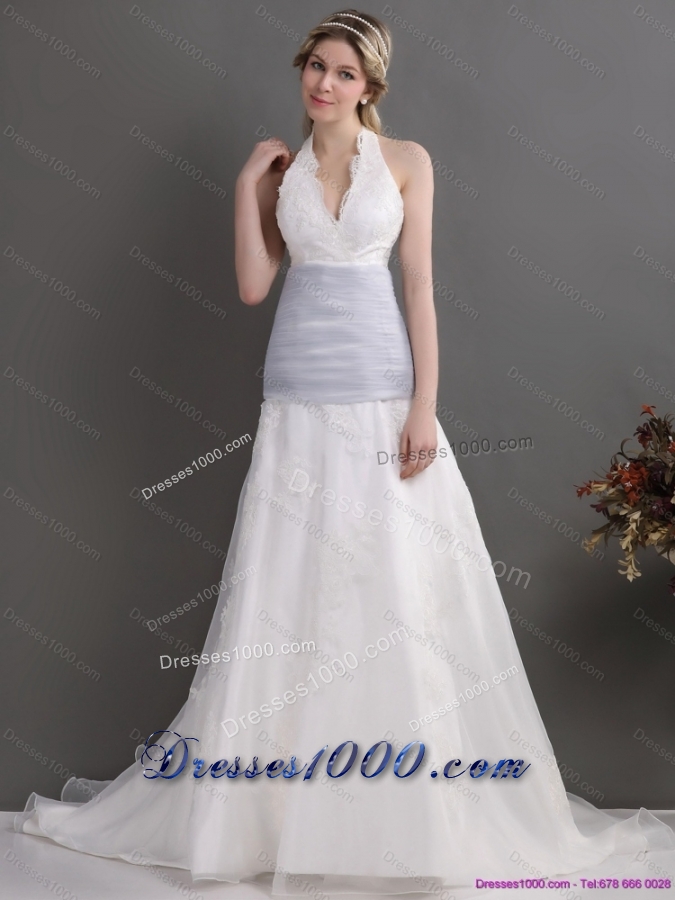 2015 New Style Halter Top Wedding Dress with Lace and Ruching