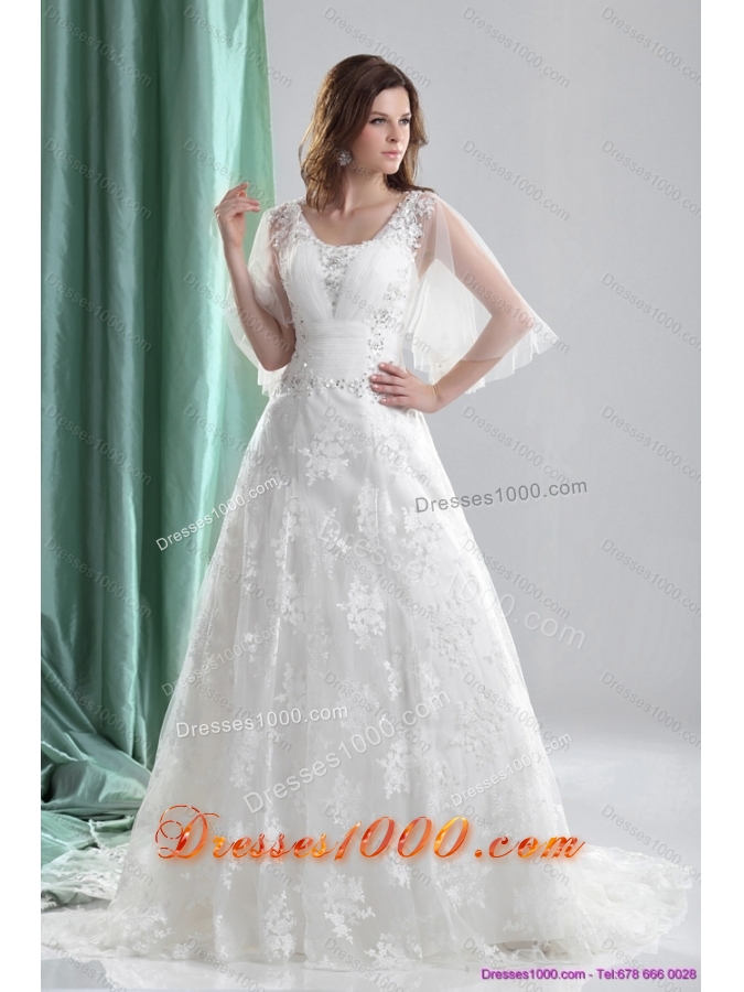2015 New Style A Line Wedding Dress with Beading and Lace