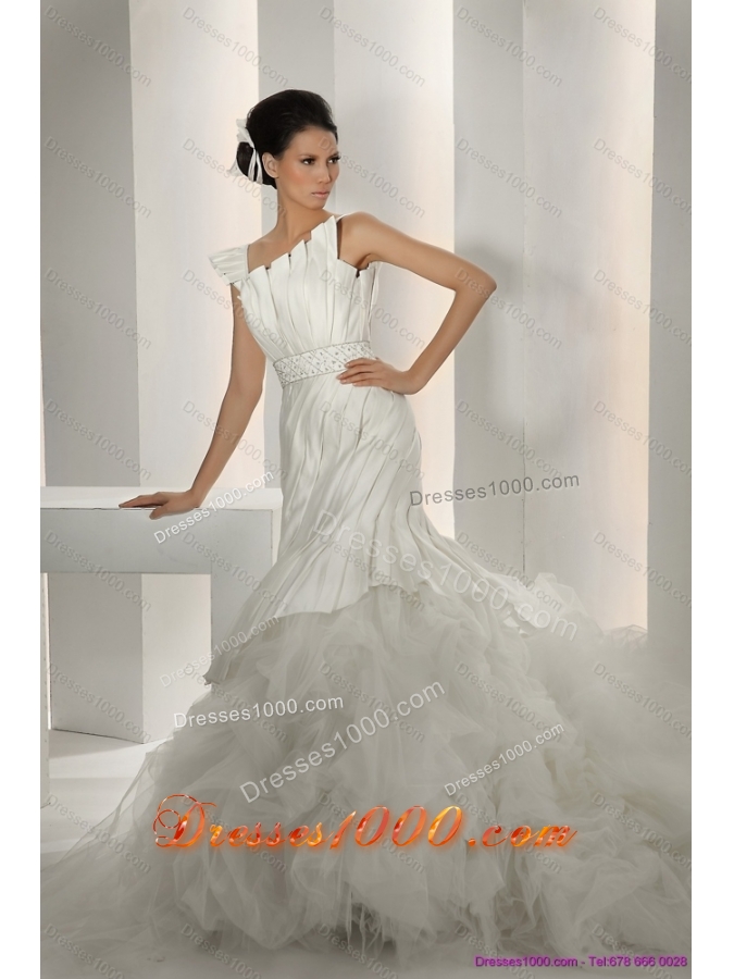 New Style 2015 Asymmetrical A Line Wedding Dress with Ruching and Ruffles