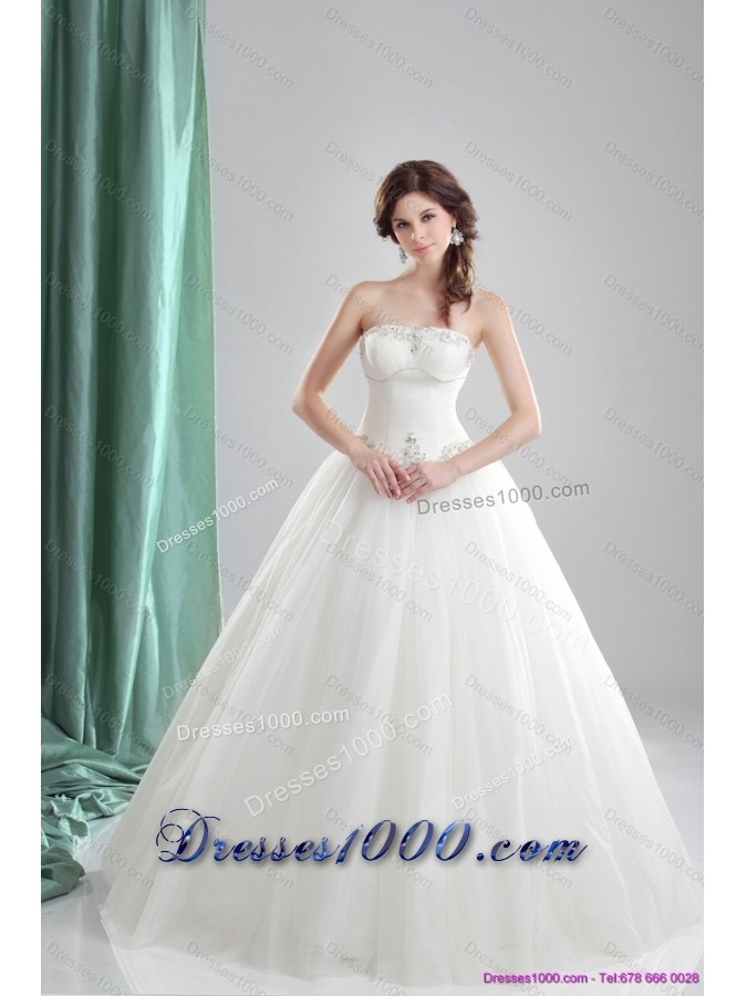2015 New Style A Line Strapless Wedding Dress with Beading