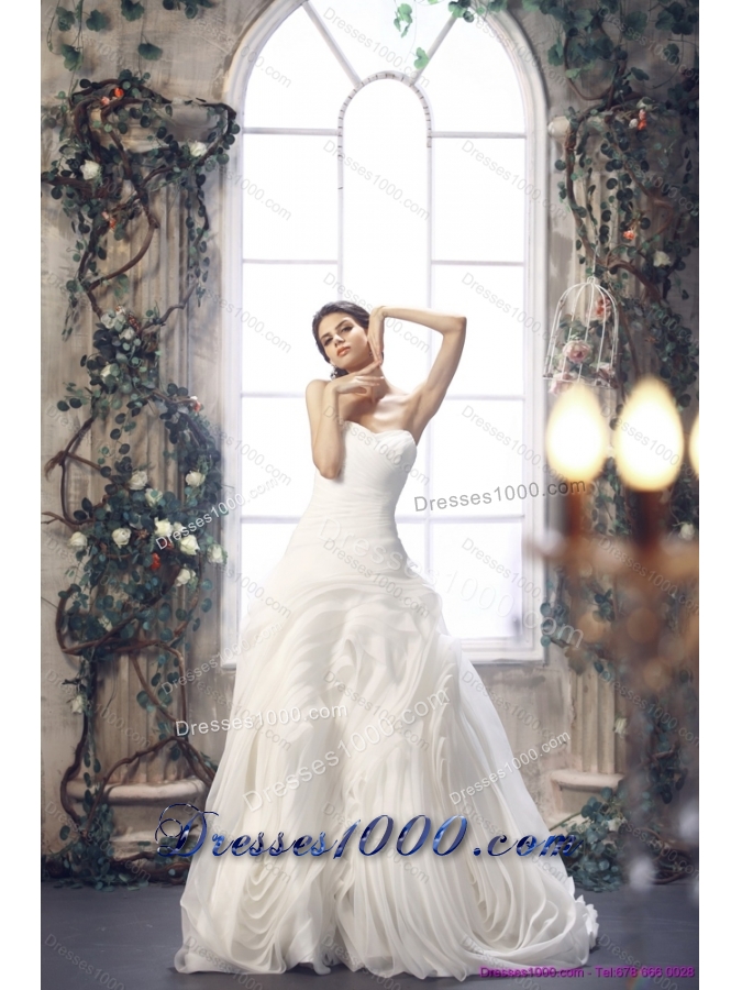 2015 Top Selling White Sweetheart Ruching Wedding Dresses with Brush Train