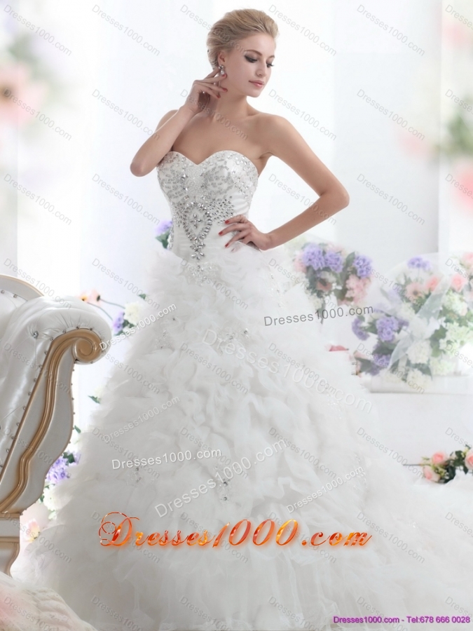 Top Selling Beading Sweetheart White Bridal Gown with Ruffles and Brush Train