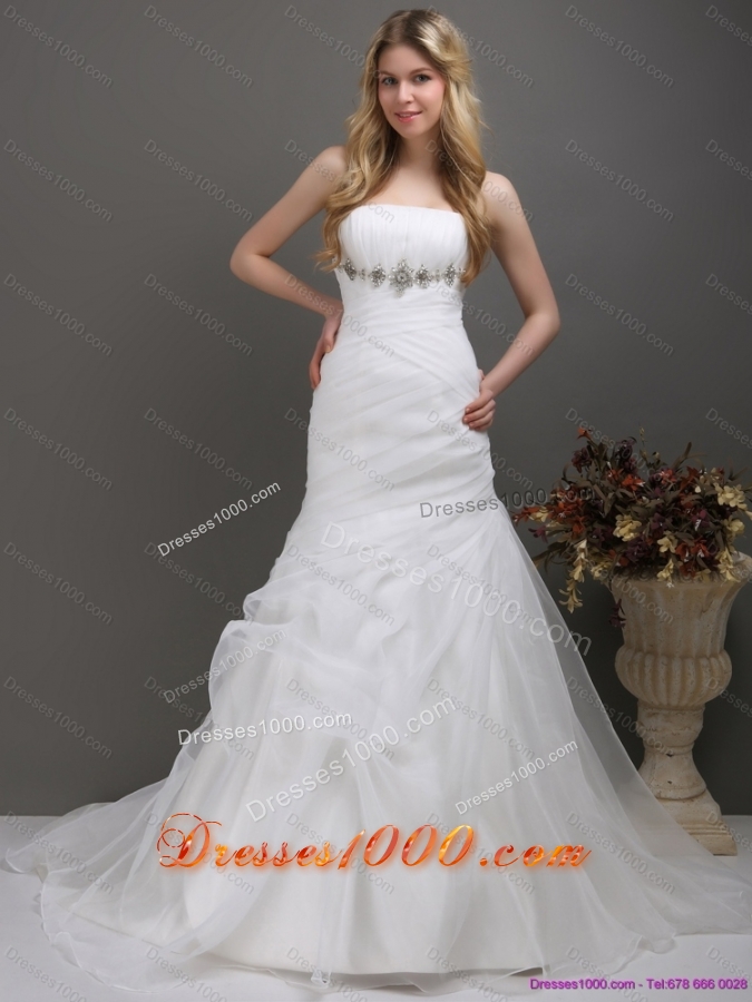 2015 Top Selling Strapless Wedding Dress with Ruching and Paillette