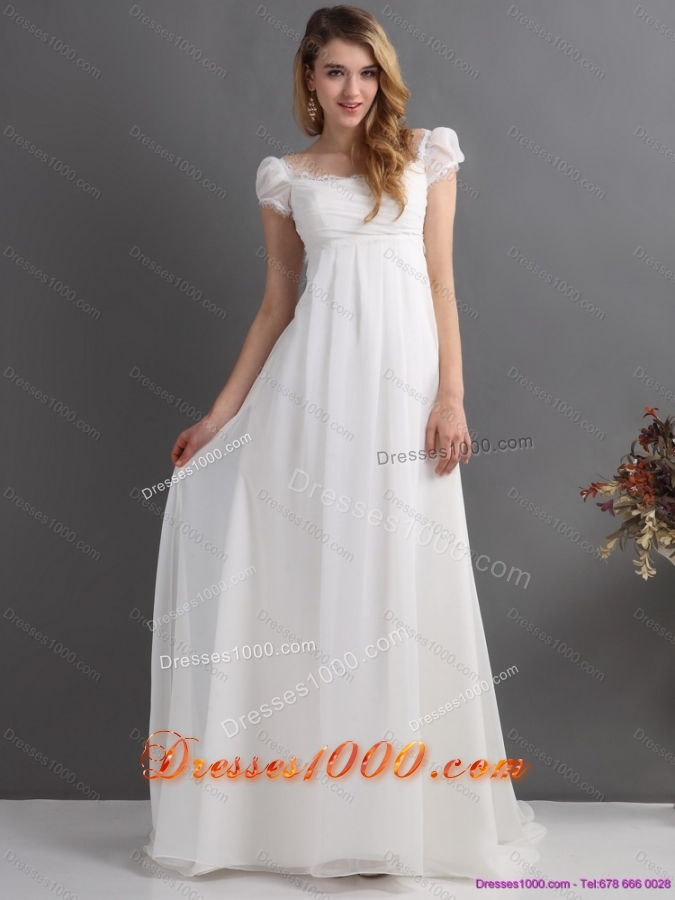 Top Selling 2015 Ruching Square Wedding Dress with Floor Length