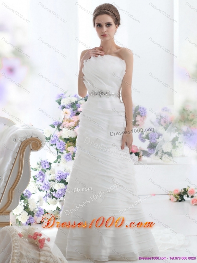 2015 Top Selling Strapless Wedding Dress with Beading and Ruching