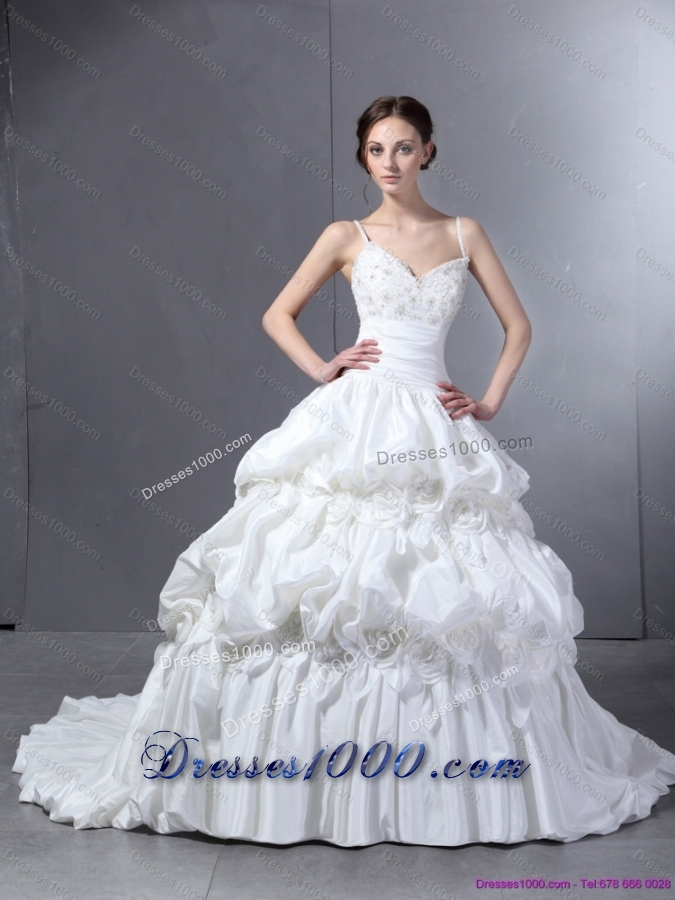 2015 Top Selling Sweetheart Wedding Dress with Lace and Pick Ups