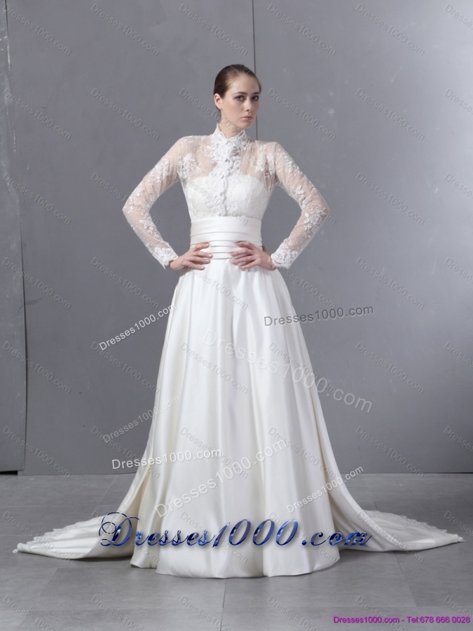Ruching Strapless White Wedding Dresses with Brush Train for 2015