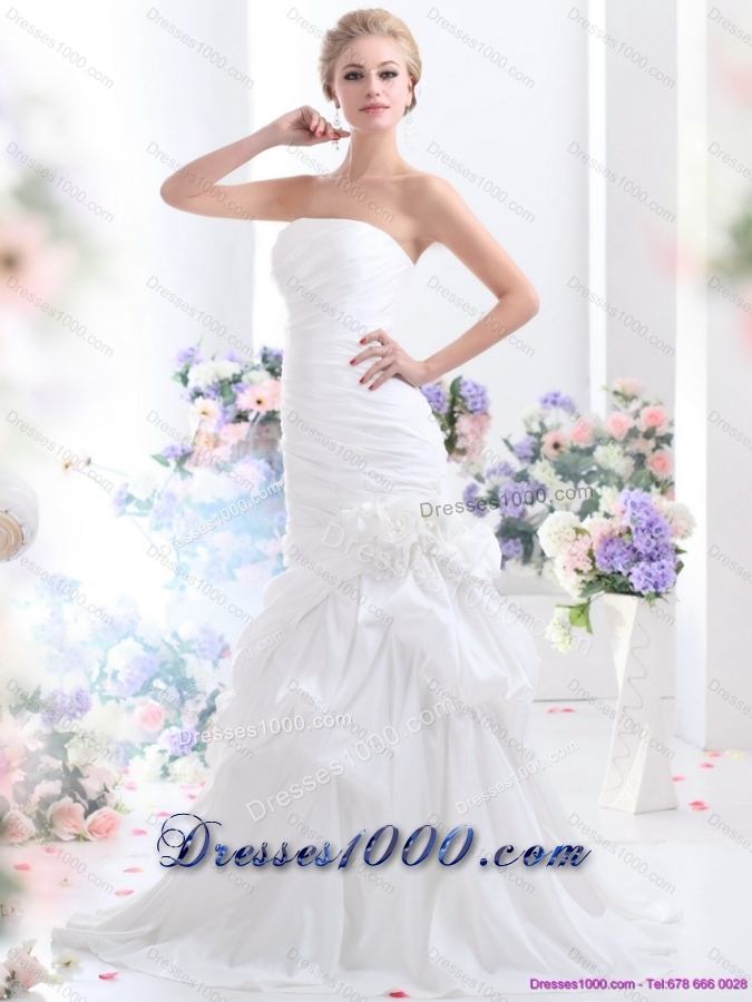 Ruffles Strapless White Bridal Gowns with Hand Made Flower for 2015