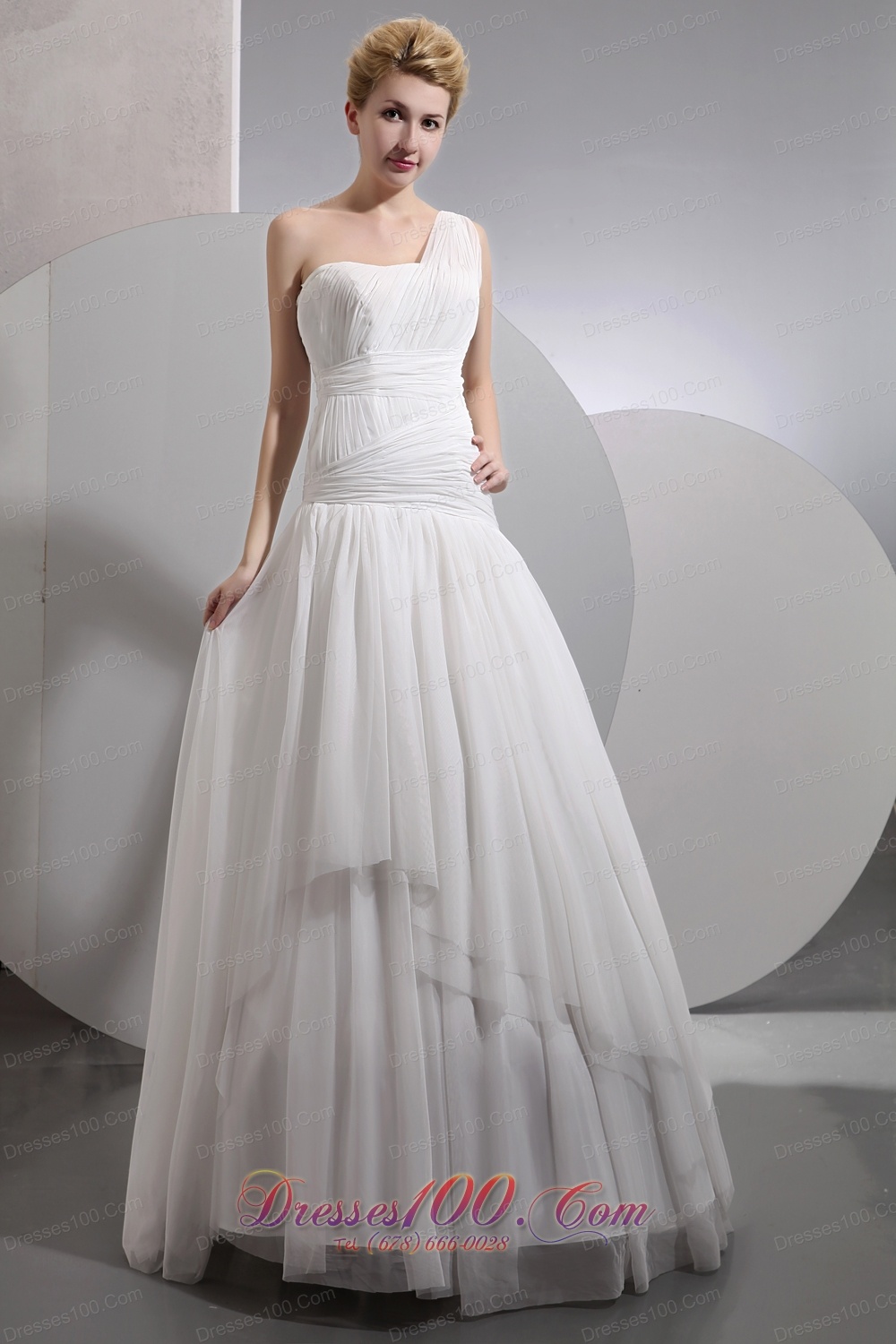 Designer One Shoulder Beach Wedding Gowns Wrapped Style