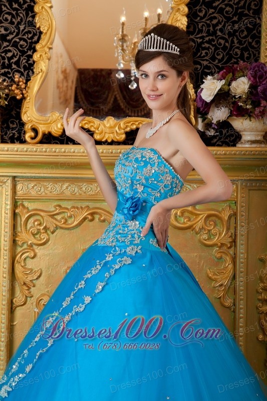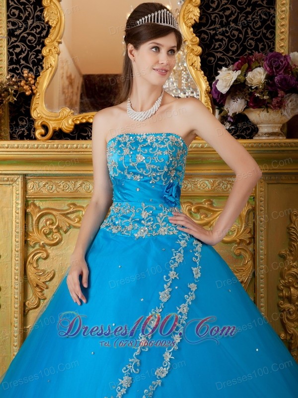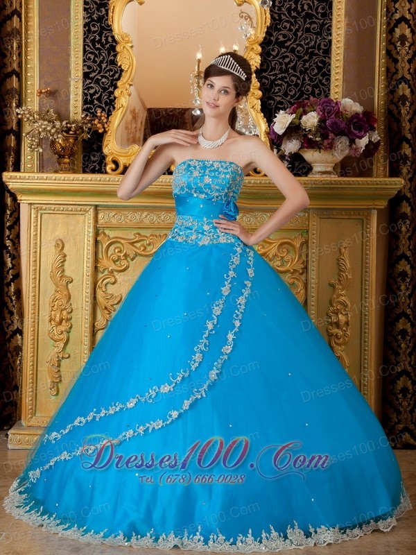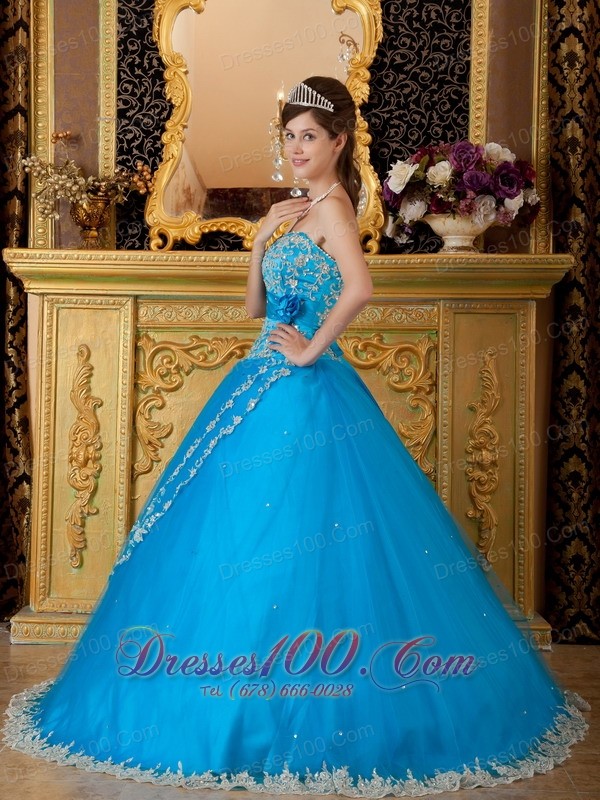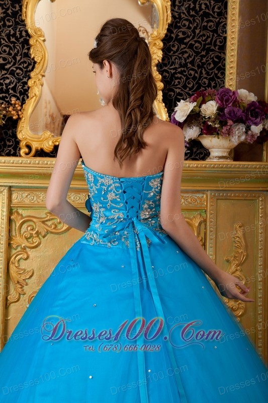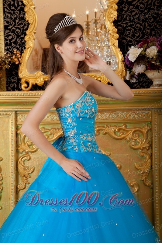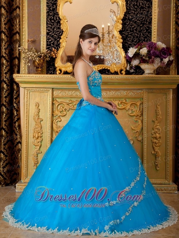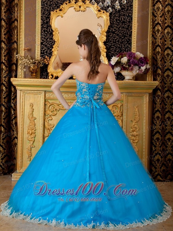 Blue Ball Gown Tulle Lace Appliques Quinceanera Dress