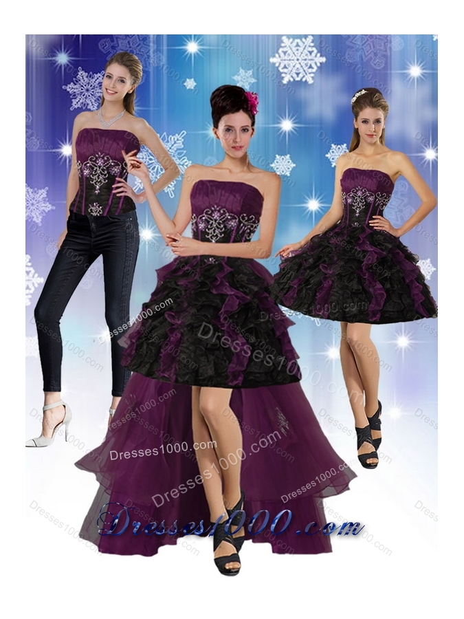High Low Strapless 2015 Detachable Prom Dresses with Ruffles and Embroidery