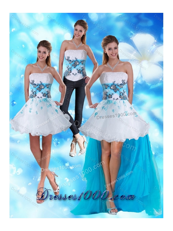 2015 Strapless White and Blue Detachable Prom Skirts with Appliques and Beading
