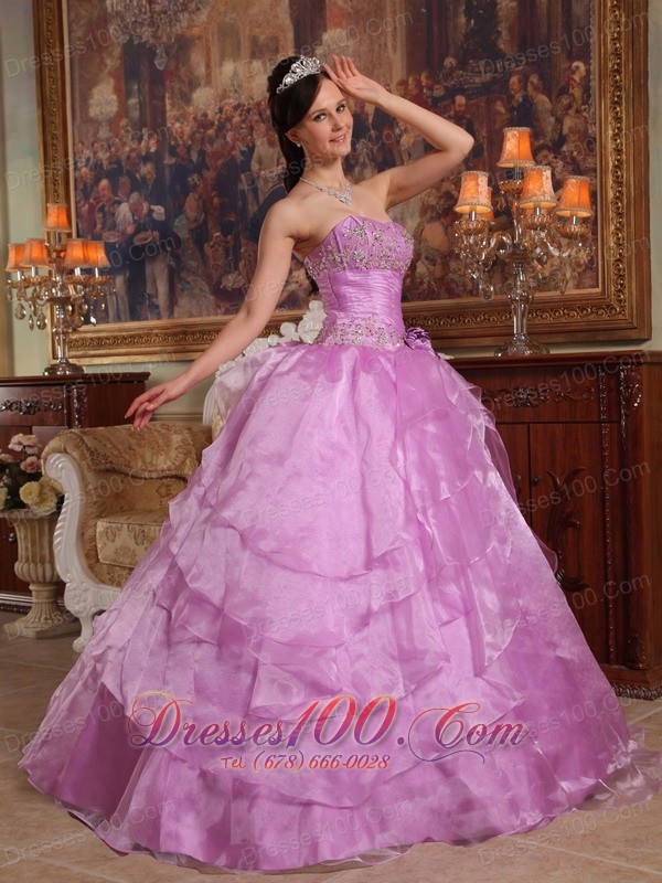 Lavender Beading Ball Gown Organza Sweet 15 Dresses