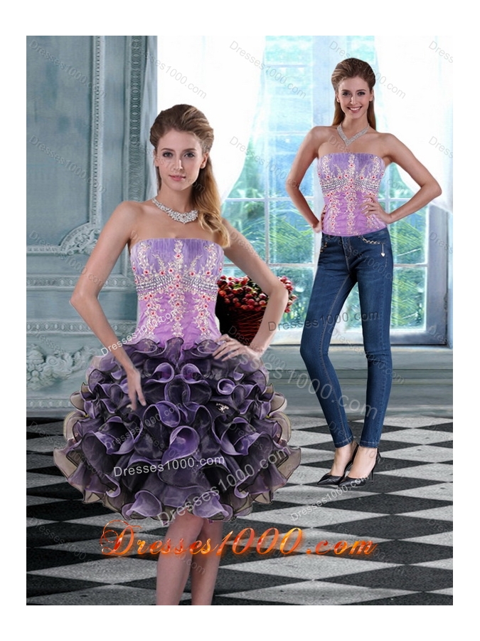 2015 Strapless Detachable Prom Skirts with Appliques and Ruffles
