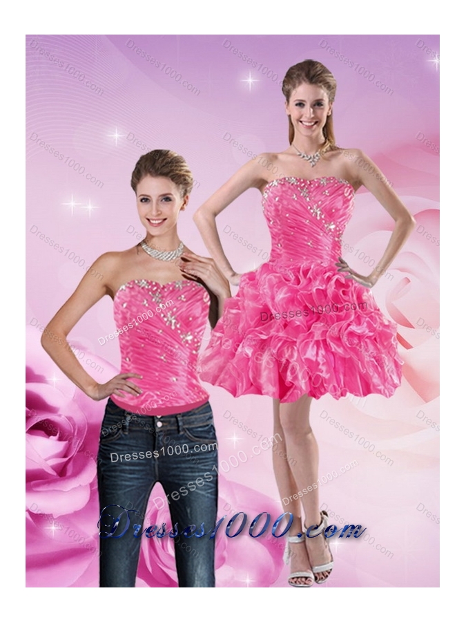 2015 Strapless Hot Pink Detachable Prom Skirts with Beading and Ruffles