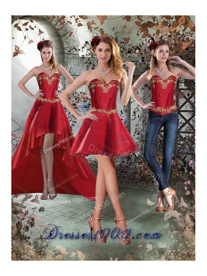 Sweetheart Embroidery Detachable Prom Skirts Dress for 2015