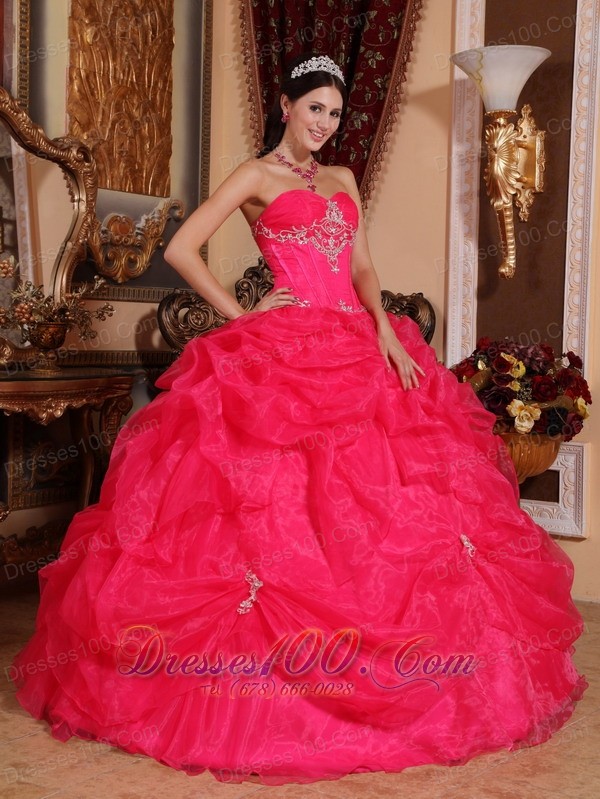Sweetheart Coral Red Quinceanera Dress Organza Beading