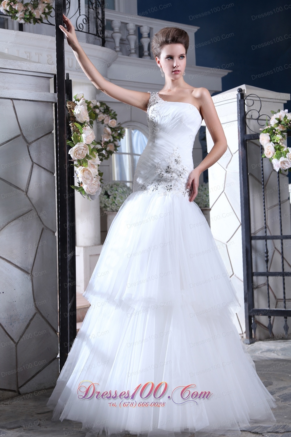 One Shoulder Mermaid Bridal Dress Crystal Tulle Tiered