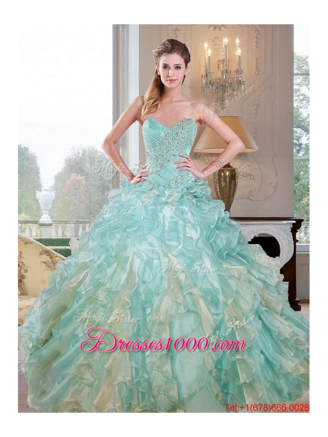 2015 Designer Sweetheart Dress for Quince with Beading and Ruffles