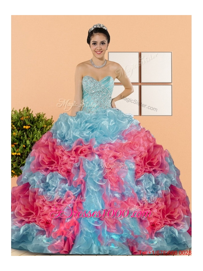 Multi Colored Multi Color 2015 Quinceanera Dresses with Beading and Ruffles