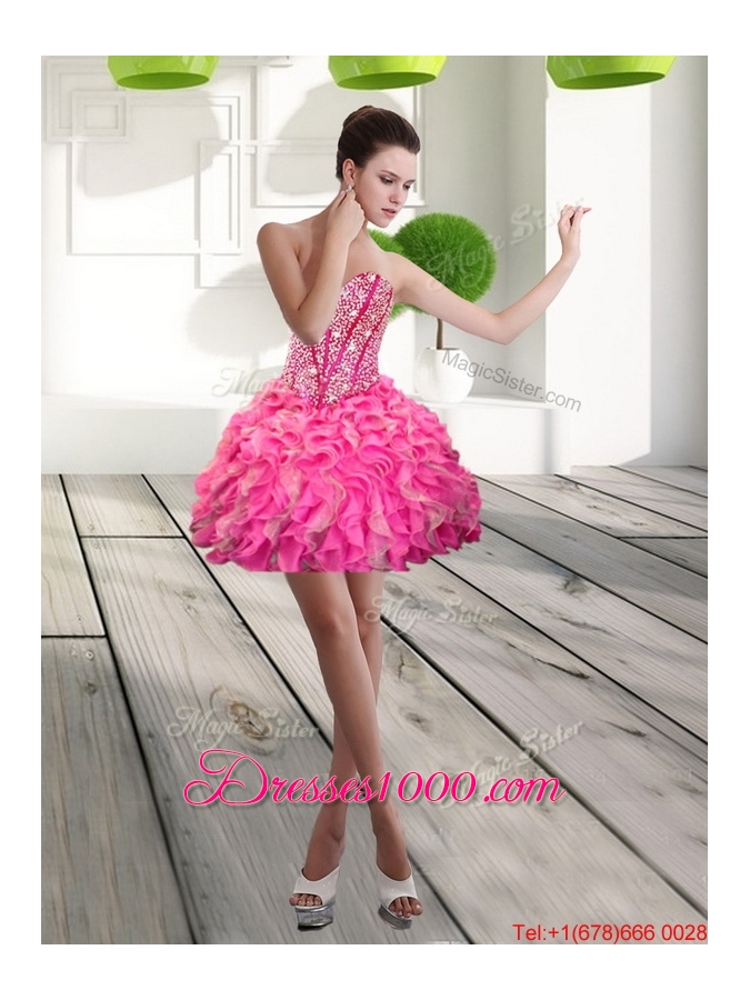 Gorgeous Mini Length Sweetheart Beading and Ruffles Prom Dress for 2015