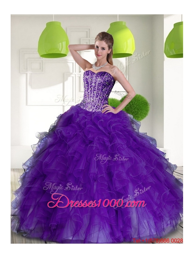 Designer Beading and Ruffles Sweetheart 2015 Quinceanera Dresses in Purple