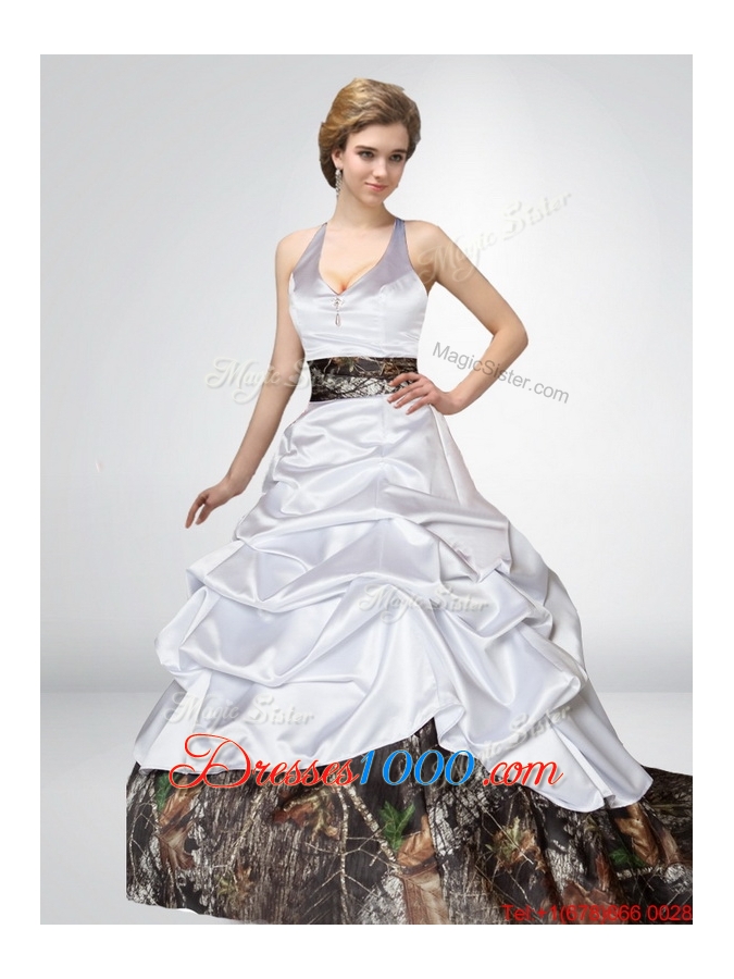 Perfect and Popular A Line Camo Wedding Dresses with Bowknot and Side Zipper