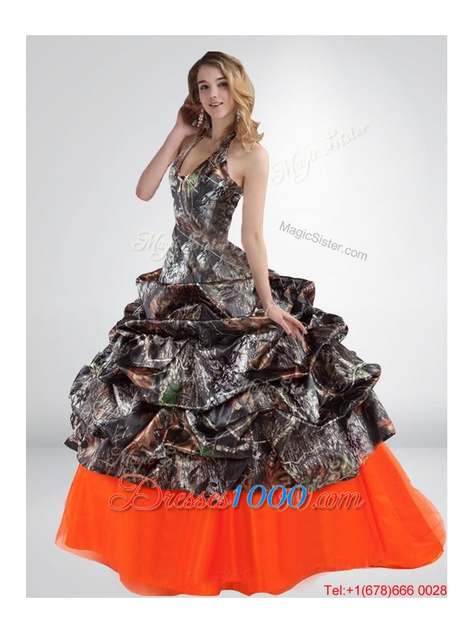 2015 Perfect Sturning Halter Top Camo Wedding Dresses with Multi Color