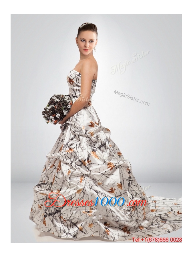 2015 Perfect and Fashionable A Line Court Train Camo Wedding Dresses in Multi Color