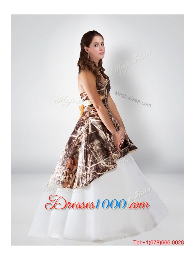 Perfect and Sturning Ball Gown Halter 2015 Camo Wedding Dresses with Bowknot