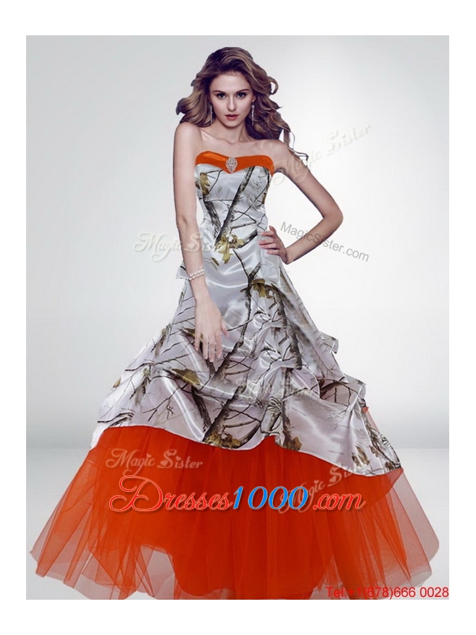 Popular A Line Strapless Camo Wedding Dresses with Brush Train