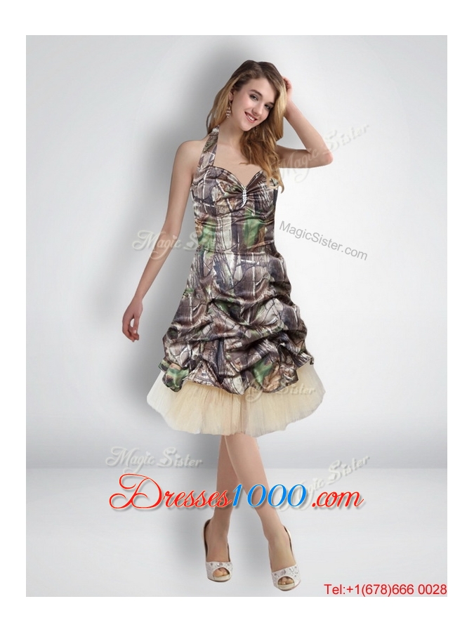 Beautiful 2015 Short Halter Top Camo Prom Dresses with Knee Length