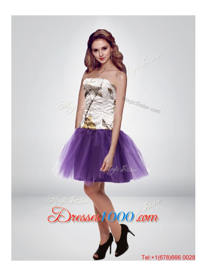 The Beautiful Hot Mini Length Strapless Camo Prom Dresses in Multi Color