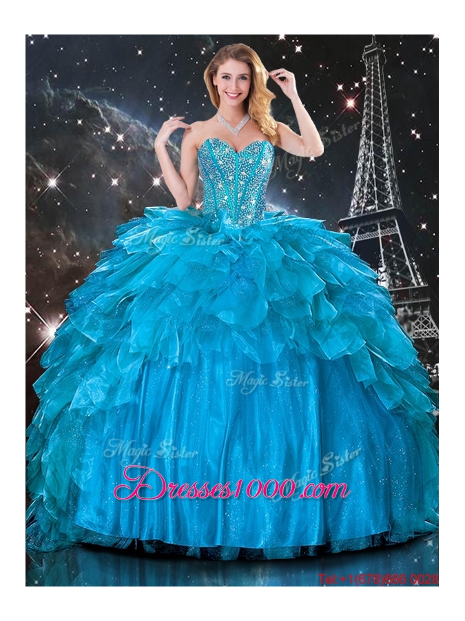 2016 Artistic Ball Gown Beaded Detachable Quinceanera Gowns in Blue