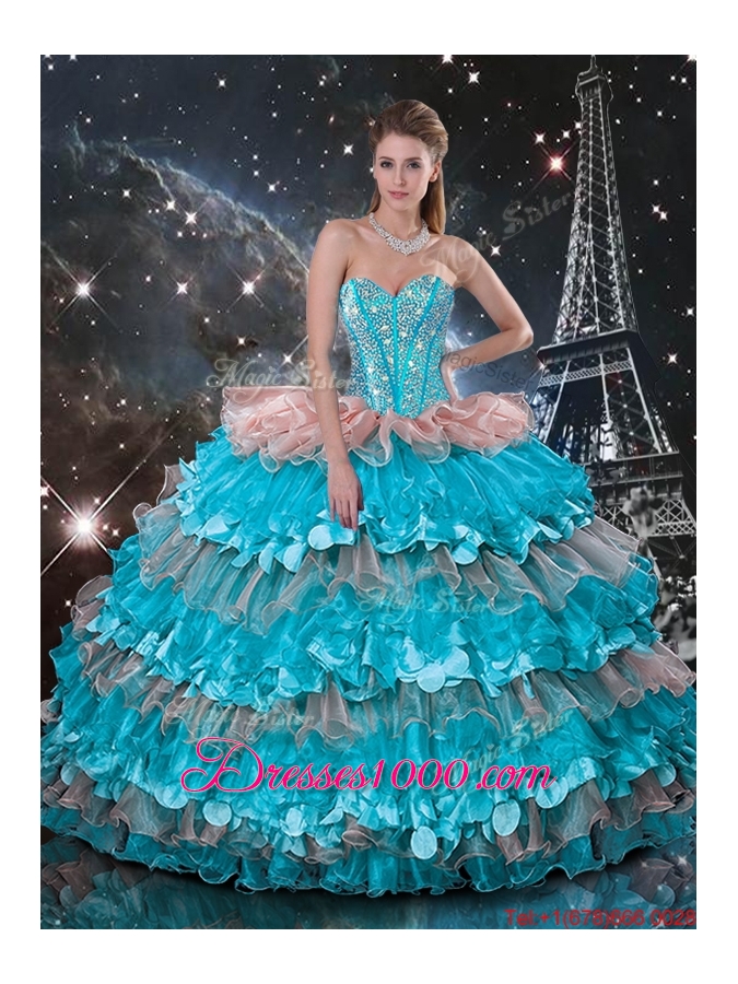 2016 Feminine Sweetheart Quinceanera Dresses with Beading and Ruffled Layers
