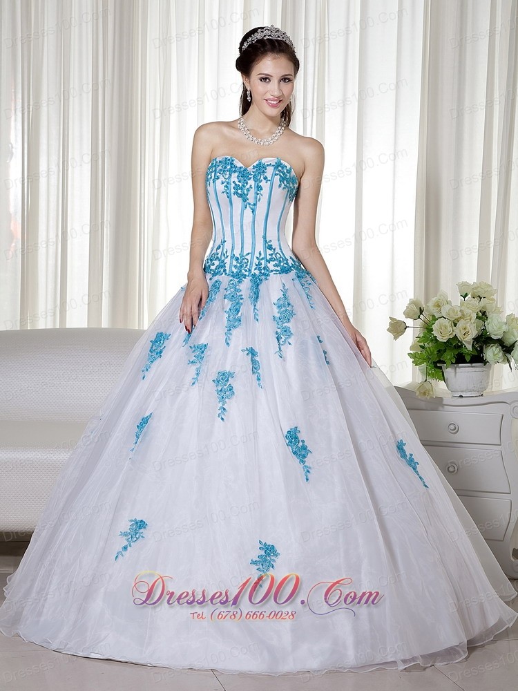 White Ball Gown Sweetheart Appliques Sweet 16 Dresses