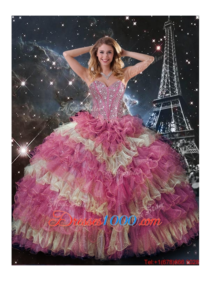 2016 Perfect Beaded Multi Color Quinceanera Dresses with Ruffled Layers