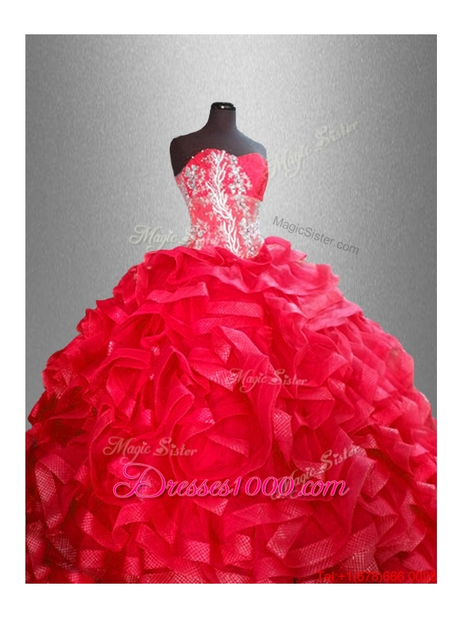 Fashionable Red Quinceanera Dresses with Beading and Ruffles