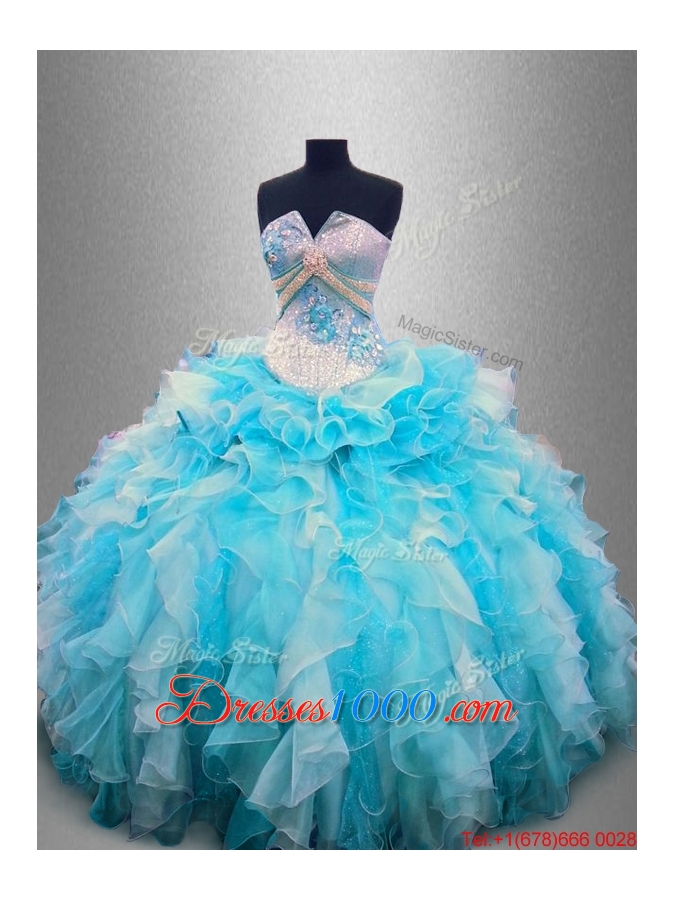 Beautiful Strapless Beading and Ruffles Quinceanera Gowns in Organza