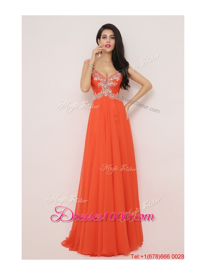 New Arrivals Brush Train Prom Dresses with High Slit and Beading