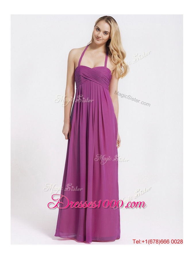 2016 Exquisite Halter Top Fuchsia Prom Dresses with Ruching