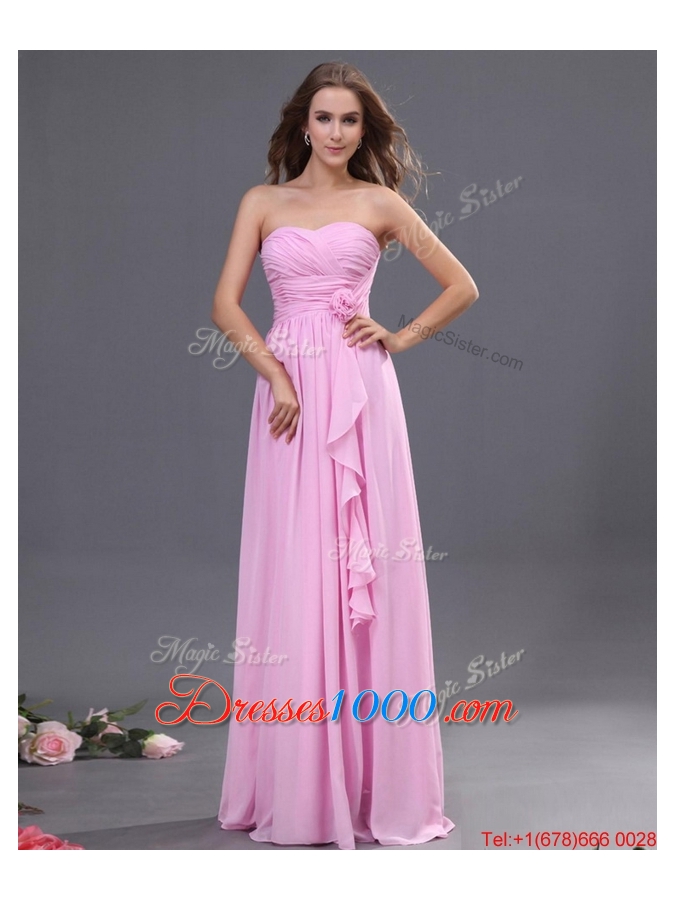Modest Ruching and Hand Made Flower Prom Dress in Rose Pink