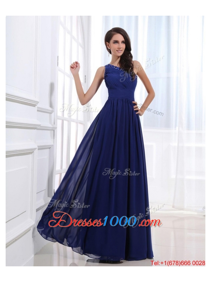 Fashionable Empire One Shoulder Prom Gowns with Beading for 2016