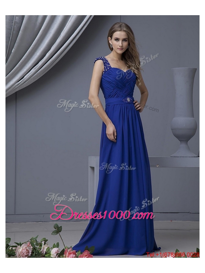 2016 Perfect Straps Beading Long Prom Dresses in Royal Blue