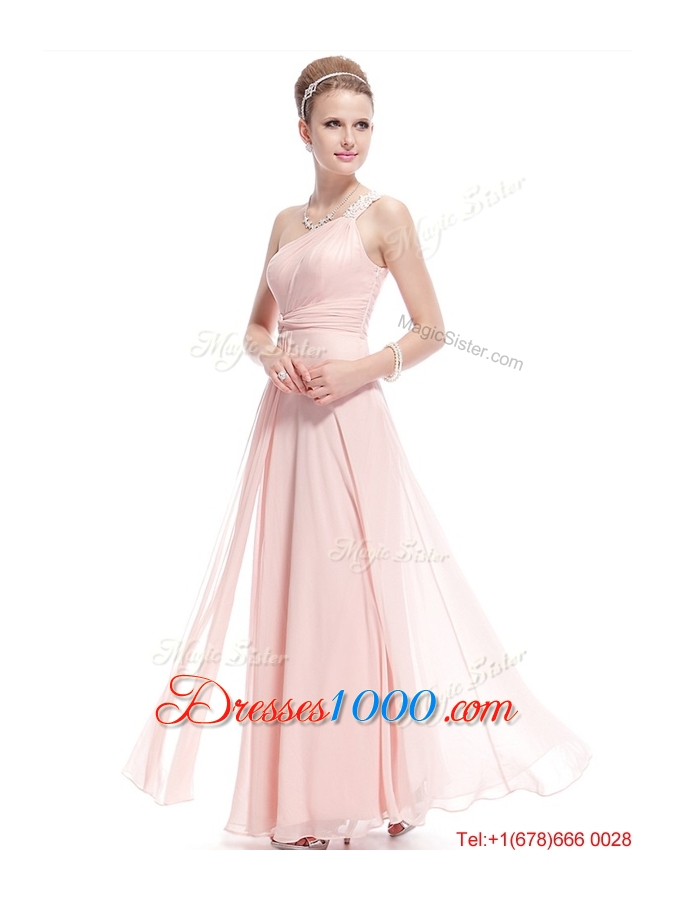 Fashionable Beaded Side Zipper Prom Dresses in Baby Pink